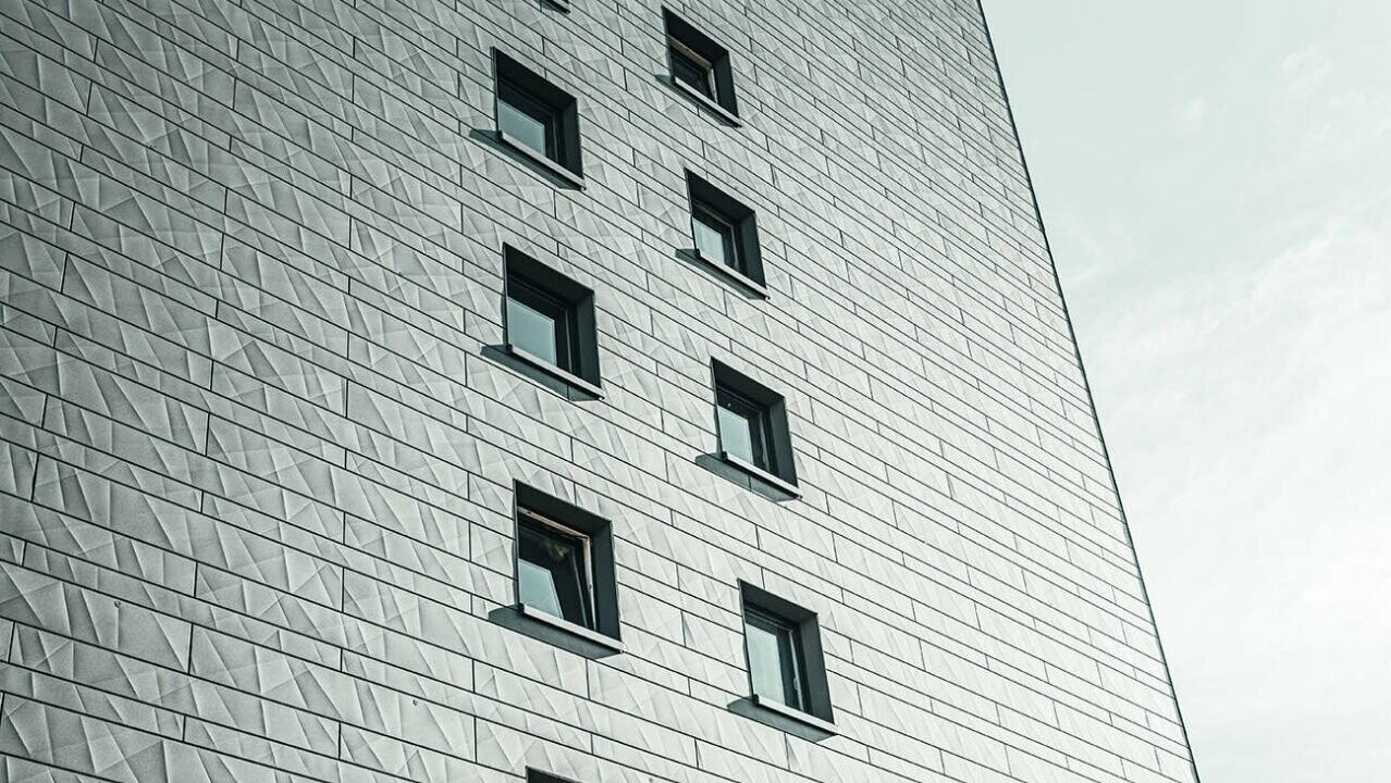 Le choix s'est finalement porté sur le Siding.X de PREFA en largeurs utiles de 400 mm, 300 mm et 200 mm, couleur P.10 gris souris. Le schéma de pose clair, conçu par l’architecte et les motifs géométriques uniques et remarquables des Sidings confèrent aux deux côtés du pignon de 900 m2 et 59 mètres de haut et à l’ensemble du bâtiment des années 70 un aspect moderne et intemporel. De plus, l’investissement est sécurisé grâce à la garantie de couleur et de matériau de 40 ans.