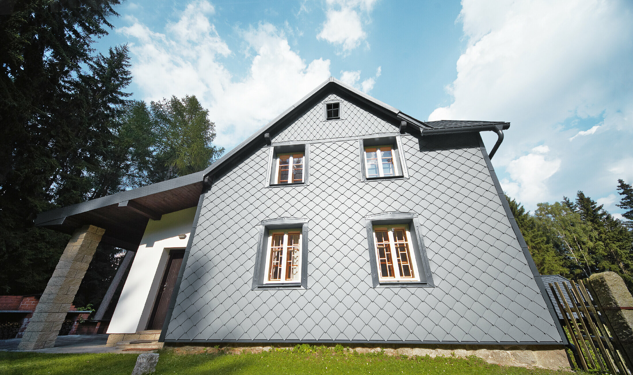 Maison avec losange de façade, losange de toit et PREFALZ couleur gris souris et anthracite P.10