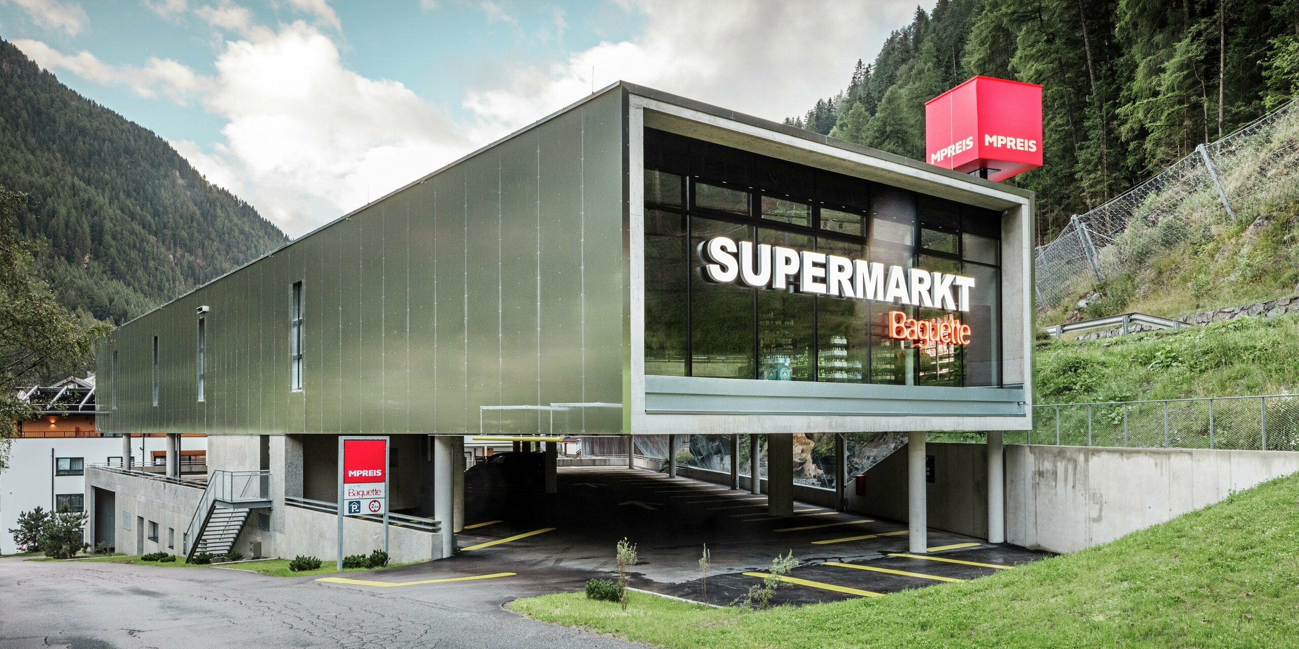 Pour la construction d'un nouveau supermarché dans la station touristique de Sölden au Tyrol, MPREIS Warenvertriebs GesmbH s'est associé aux architectes d'Innenbruck de LAAC. Au total, 700 m² de panneaux composites en aluminium ont été produits dans la couleur spéciale Reflective Natural pour obtenir exactement l'effet imaginé par les architectes. Les Alpes de l'Ötztal se reflètent dans les façades en aluminium mat et réfléchissant du supermarché.