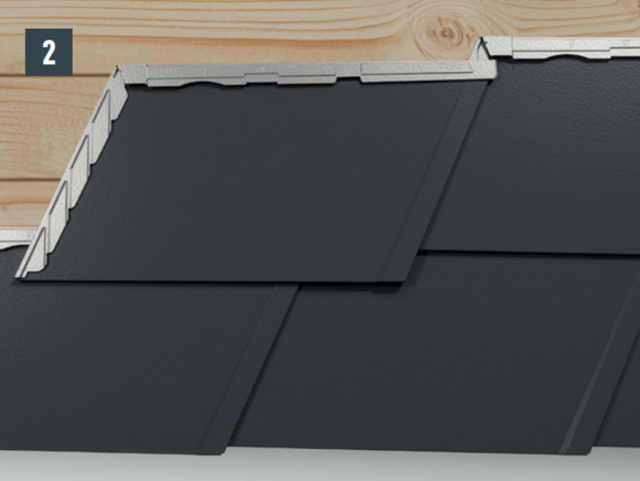 La pose des bardeaux DS.19 s’effectue de droite à gauche, rangée par rangée (en rangées horizontales).