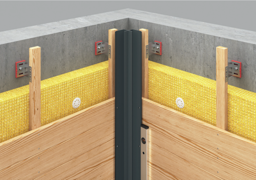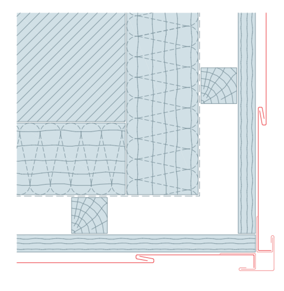 Les angles sortants et rentrants sont généralement réalisés avec deux profils repliés et une équerre d’angle. Veillez à effectuer un montage parfaitement vertical des profils repliés, en tenant compte de la dilatation, et à bien répartir les points fixes et points coulissants.