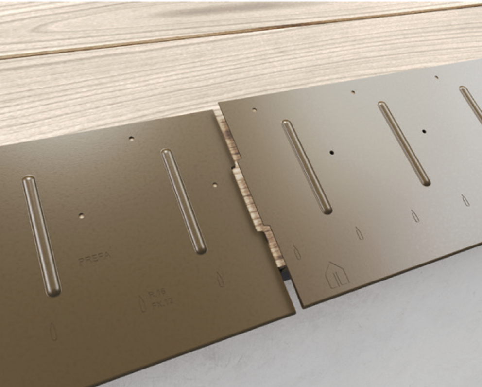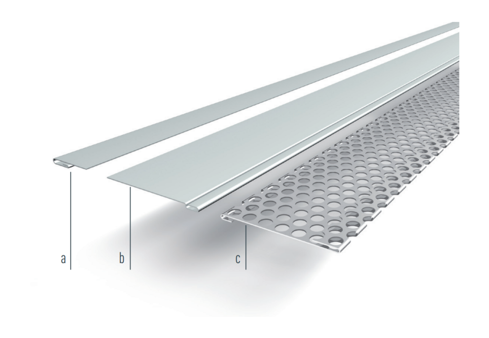 Pour le raccordement inférieur, les profils suivants sont préfabriqués à partir de la bande complémentaire PREFA ou de la tôle perforée PREFA :