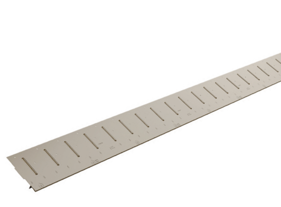 L’arrêt de la bande de départ doit être sur toute la longueur de raccordement inférieure. À l'aide d’une marque de cordeau réalisée au préalable, la bande de départ peut être posée de manière rectiligne. Veillez à ce que la saillie de la bande de départ ne dépasse pas 80 mm par rapport à la planche de voligeage. La bande de départ doit reposer entièrement sur la sous-construction en bois.