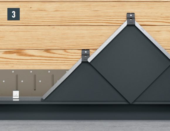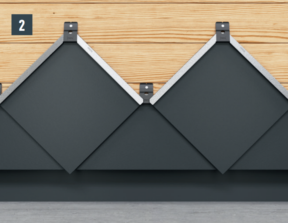 La fixation de chaque losange de façade 29 x 29 se fait à l’aide d’une patte et d’un clou annelé 2,8/25 fourni.