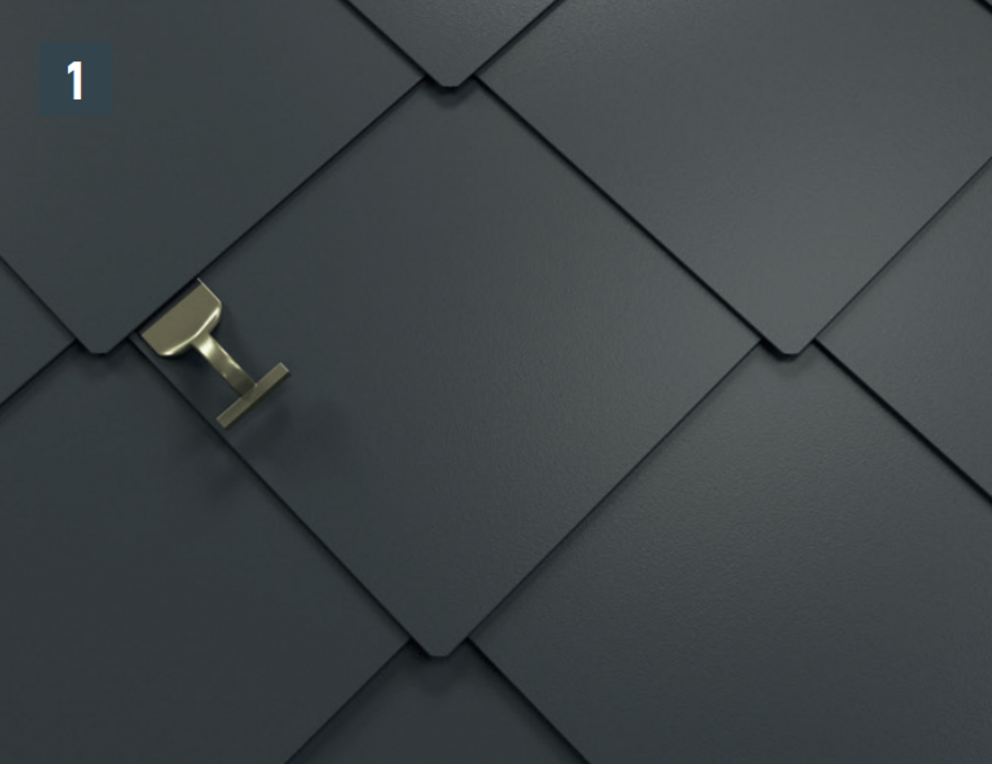 • Ouvrez légèrement l’agrafe d’accroche du nouveau losange de façade 44 x 44, poussez-le vers le haut et fixez-le (Fig. 3).