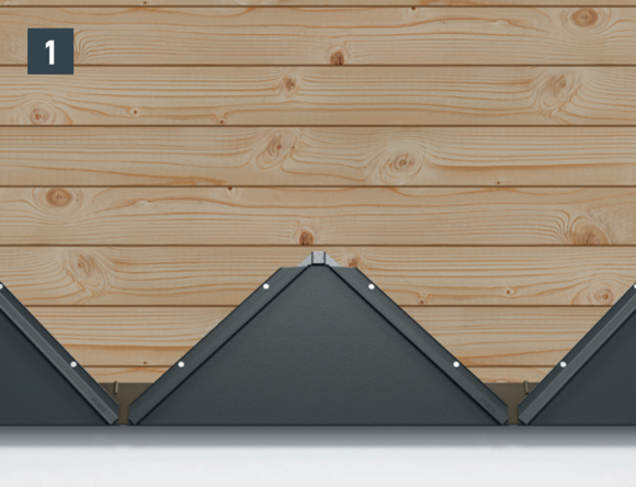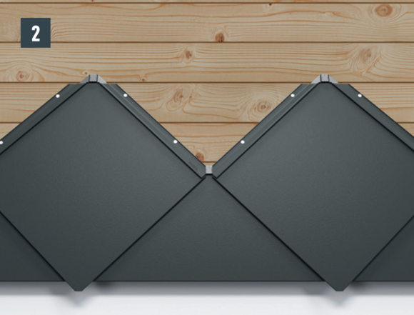 Chaque losange de façade 44 × 44 est fixé directement par des clous annelés 2,8/25 fournis et insérés dans le trou de montage pré-percé.