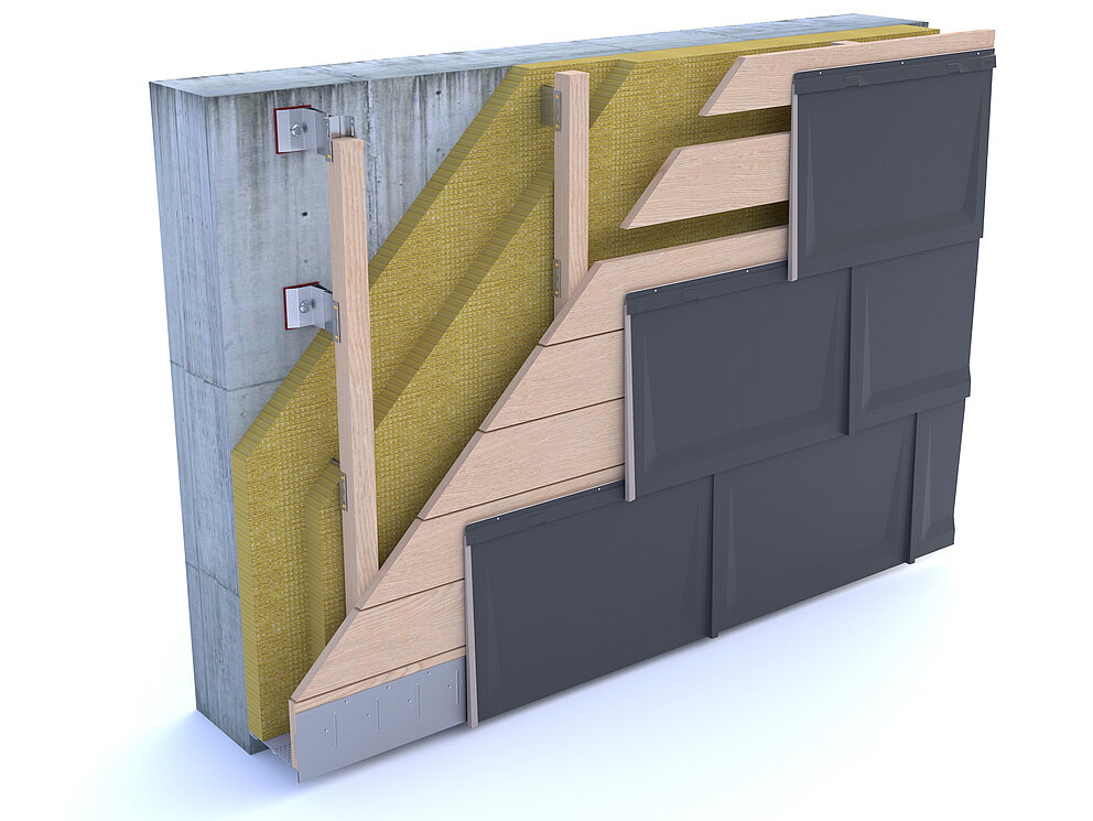 La tuile R.16. peut également être posée sur un voligeage non jointif (minimum 24 mm). Veillez, lors de la pose d’un voligeage non jointif, à ce qu’il y ait toujours une volige sous la baguette de fixation et que l’espacement de 420 mm entre les lattes soit respecté.