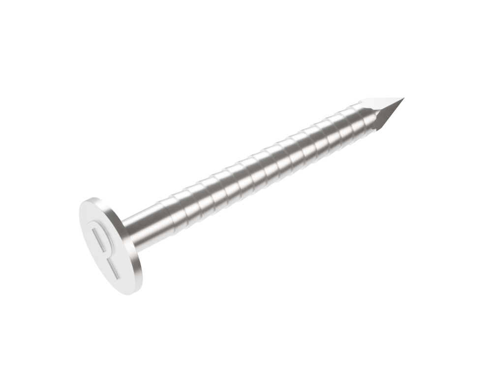 Pour fixer les couvertures à joint debout, il convient d’utiliser des pattes avec des clous, des vis ou des rivets en acier inoxydable. C’est pourquoi PREFA propose des clous annelés Niro en diverses longueurs pour la fixation des couvertures PREFALZ.
