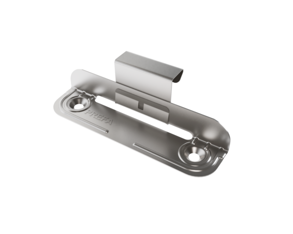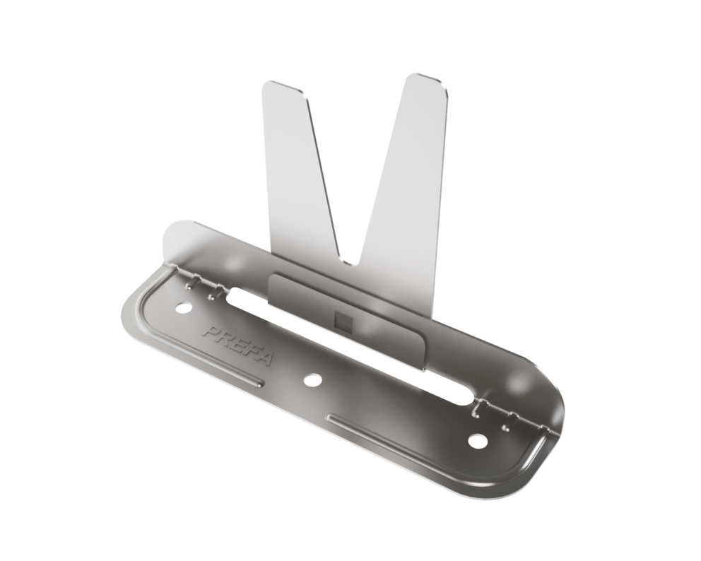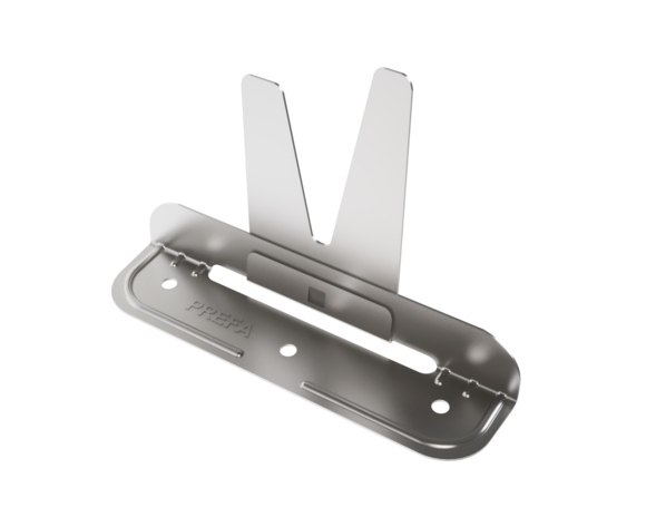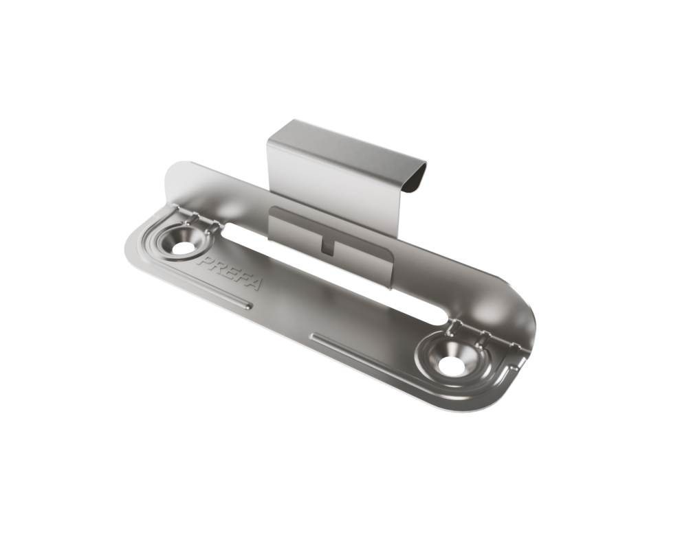 Les pattes fixes et les pattes coulissantes PREFA Niro conviennent uniquement pour les surfaces planes et fixes, et seulement pour des agrafes d’une hauteur de 25 mm !