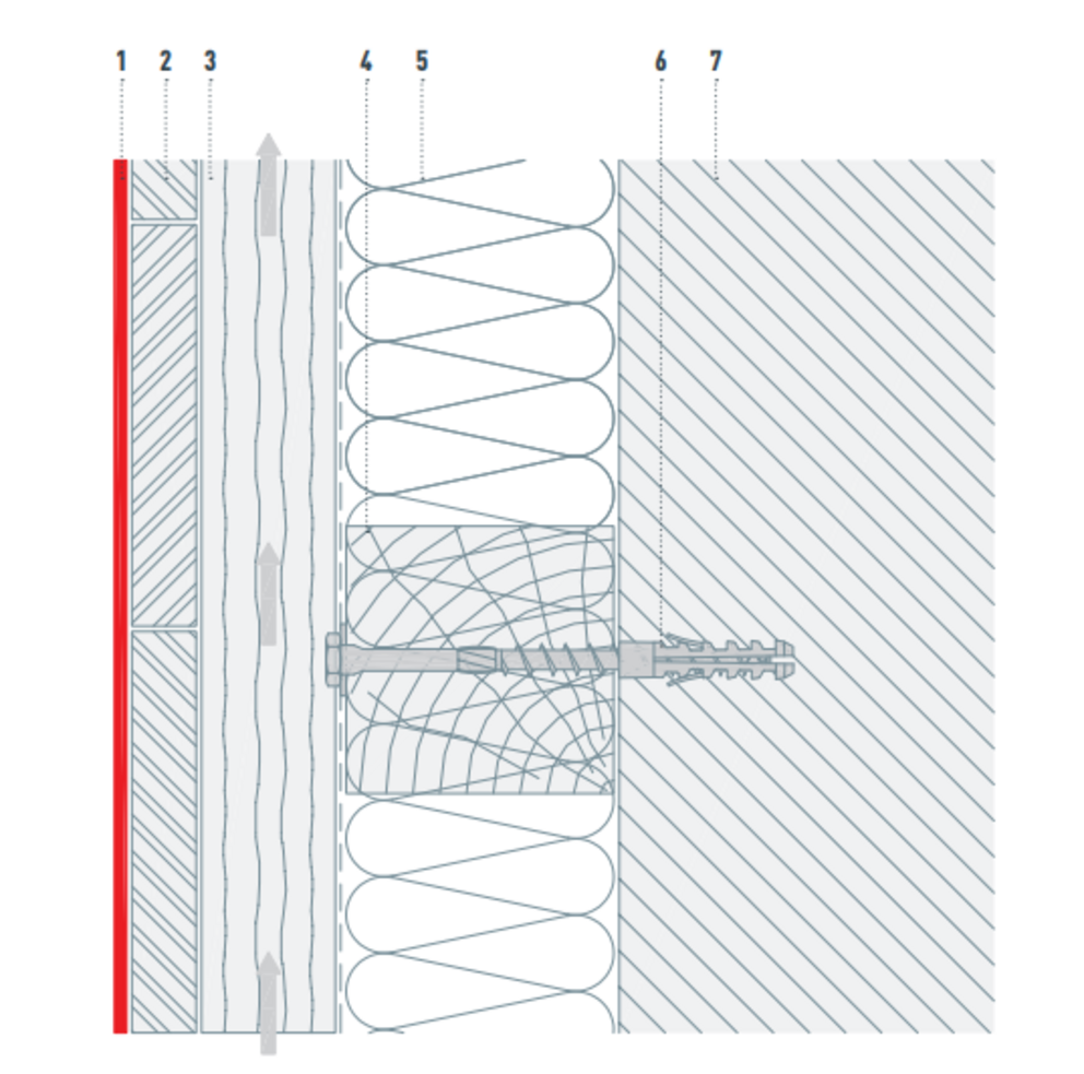 En fonction des conditions requises en matière de physique du bâtiment, il est possible d’installer les façades ventilées sur des murs isolés ou non.