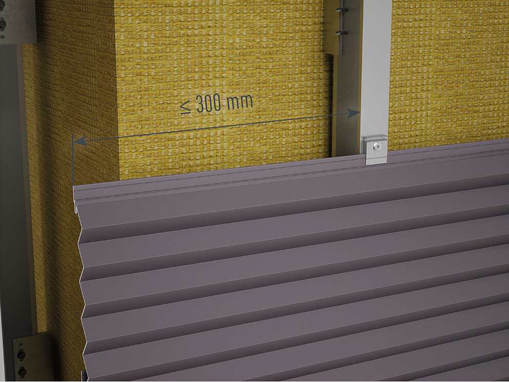 Les conditions requises en matière de physique du bâtiment doivent être prises en compte. Le choix du système d’ancrage de la sous-construction dépend à la fois de la structure porteuse sur laquelle elle sera fixée, des charges auxquelles elle sera soumise et des conditions requises en matière de protection incendie. Vérifiez la fonction et le dimensionnement de la sous-structure, aussi bien dans le cadre d’une nouvelle construction que pour une rénovation.