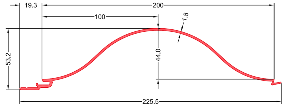 • Largeur totale du profil 225,5 mm