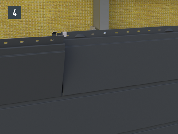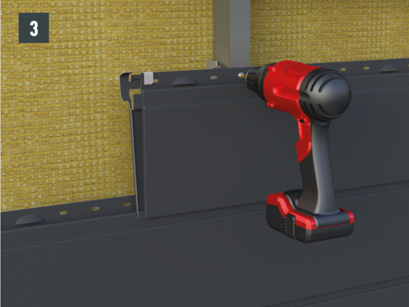 • Montez le Siding avec le joint prémonté comme prévu dans le guide de pose Siding et fixez-le sur la sous-construction (Fig. 3).