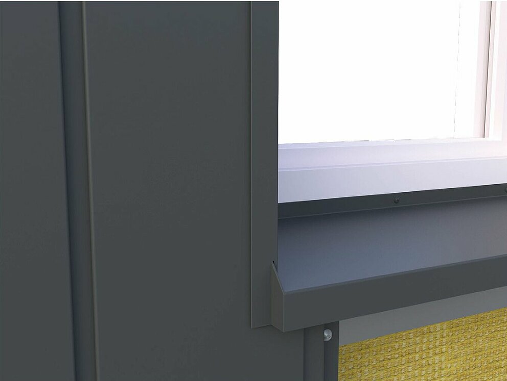 Pliez ensuite un habillage de l'embrasure supérieur en tenant compte des conditions spécifiques du chantier et insérez-le dans le profil de jonction. Le renvoi d’eau est accroché à l’habillage de tableau supérieur.