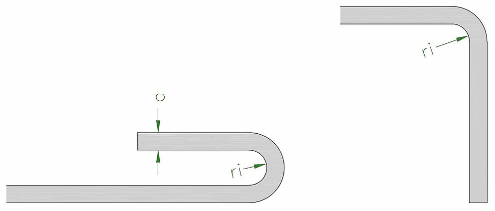 Rayon de cintrage : ri ≥ 2,5 × d