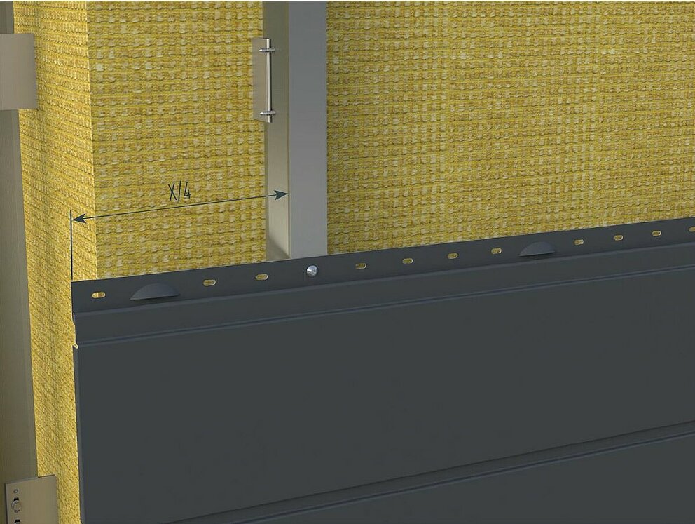 Respectez le dépassement maximal recommandé pour les produits Siding, Siding.X et Siding perforé, conformément aux exigences statiques pour les angles de bâtiment non soutenus / les zones de bordure, soit au maximum un quart de l’espacement entre les éléments de la sous-construction.