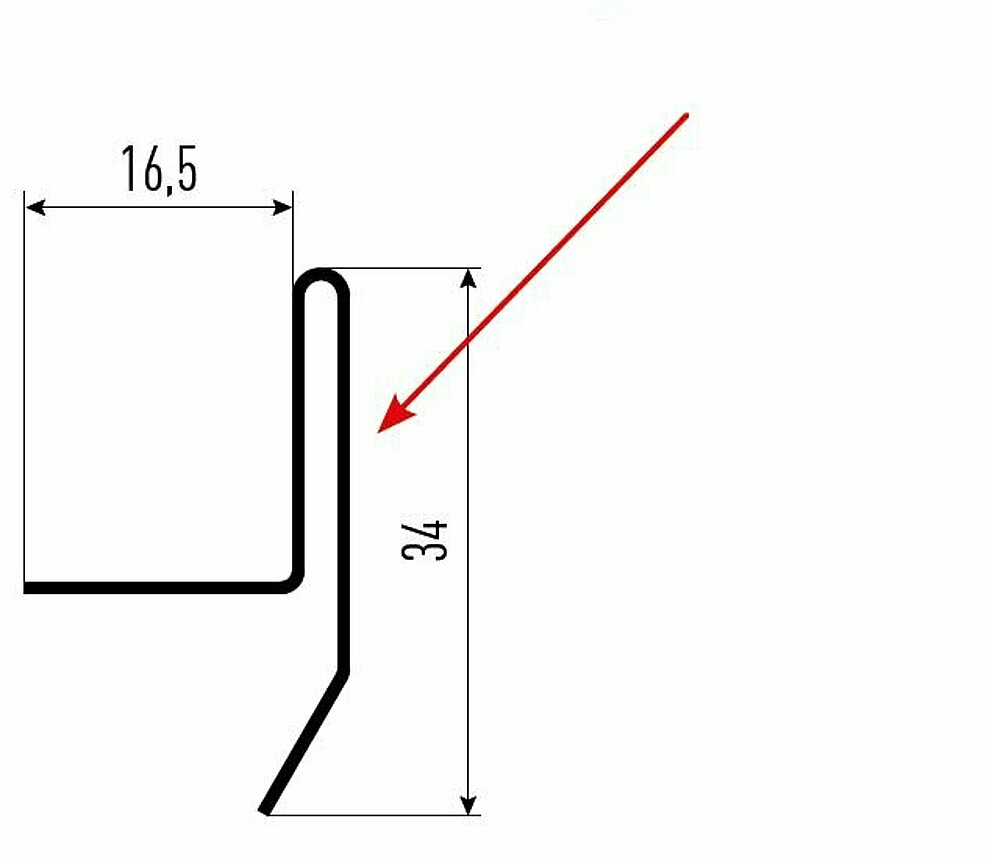 La flèche rouge indique toujours le côté prélaqué des profils accessoires.