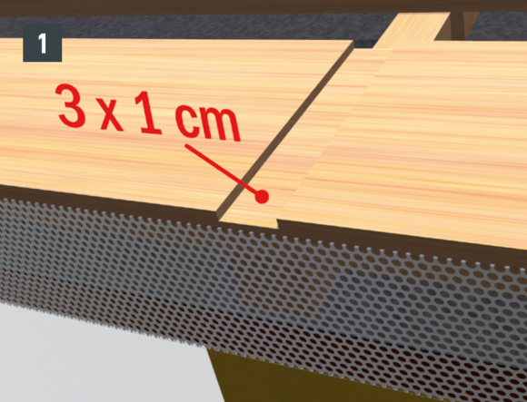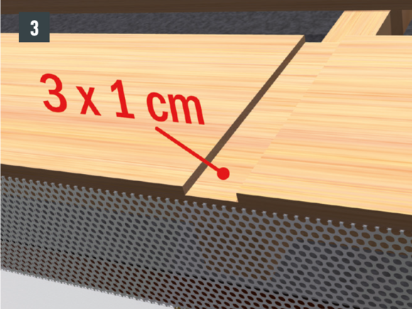 • Réalisez un évidement pour les crochets de gouttière dans la chanlatte (Fig. 3).