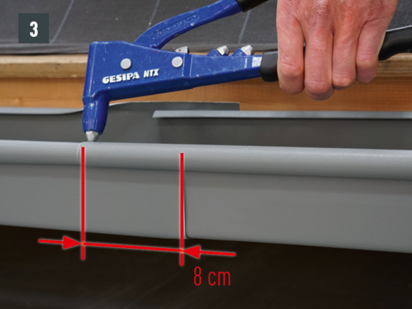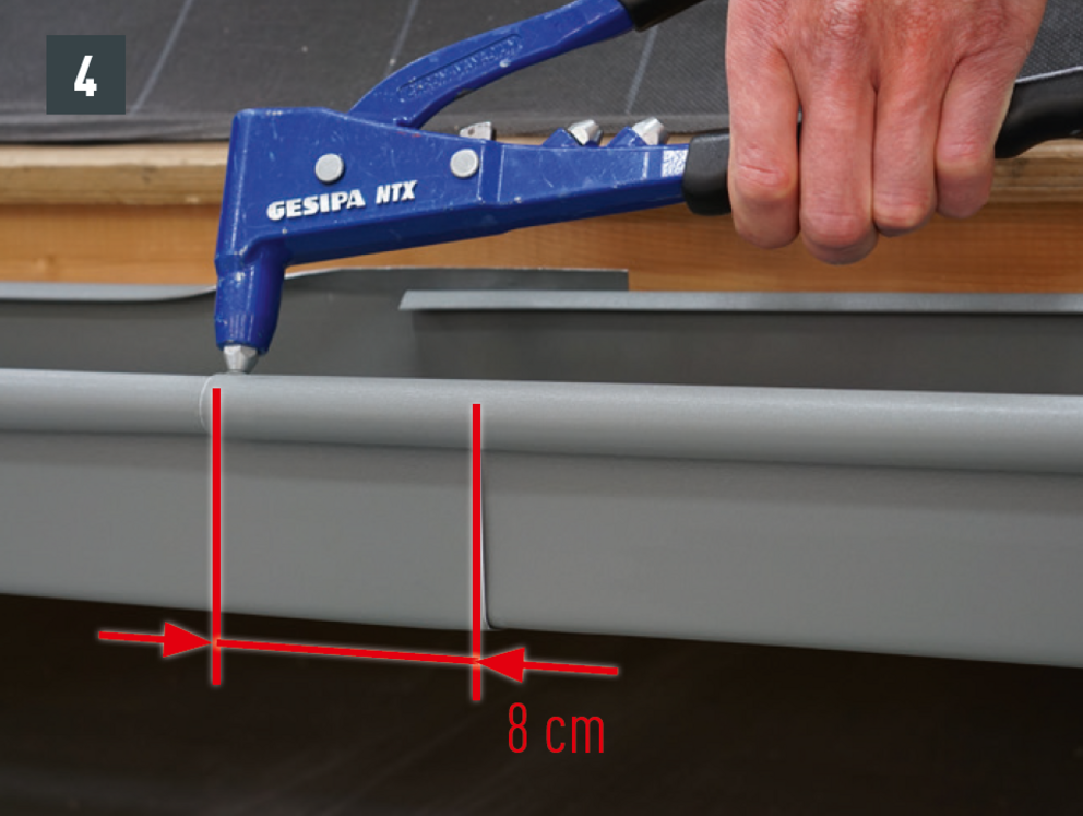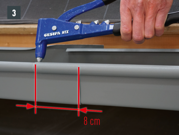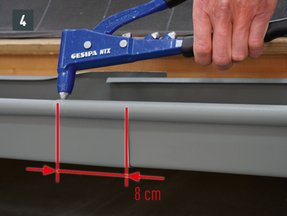 Ne rivetez pas le boudin de gouttière des deux côtés, cela supprimerait toute possibilité de dilatation.