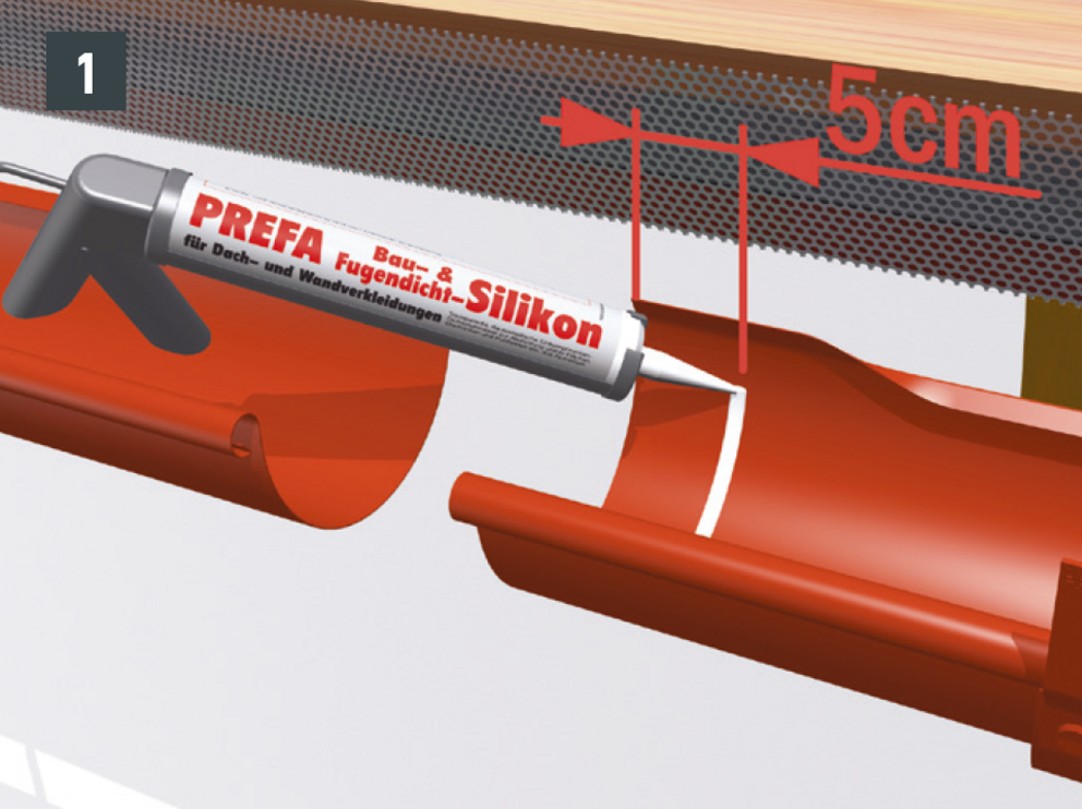 Raccords de gouttières demi-rondes avec 1 cartouche de colle spéciale