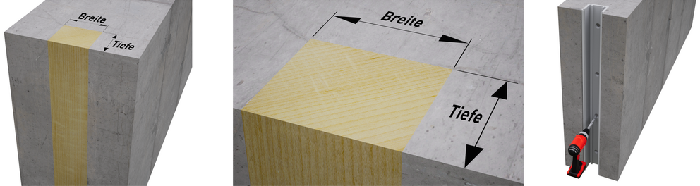 Dans le cas d’un montage « dans l’embrasure (affleurant) », lorsque la maçonnerie est fermée en partie supérieure, prévoir un dégagement suffisant pour permettre l’insertion des batardeaux !