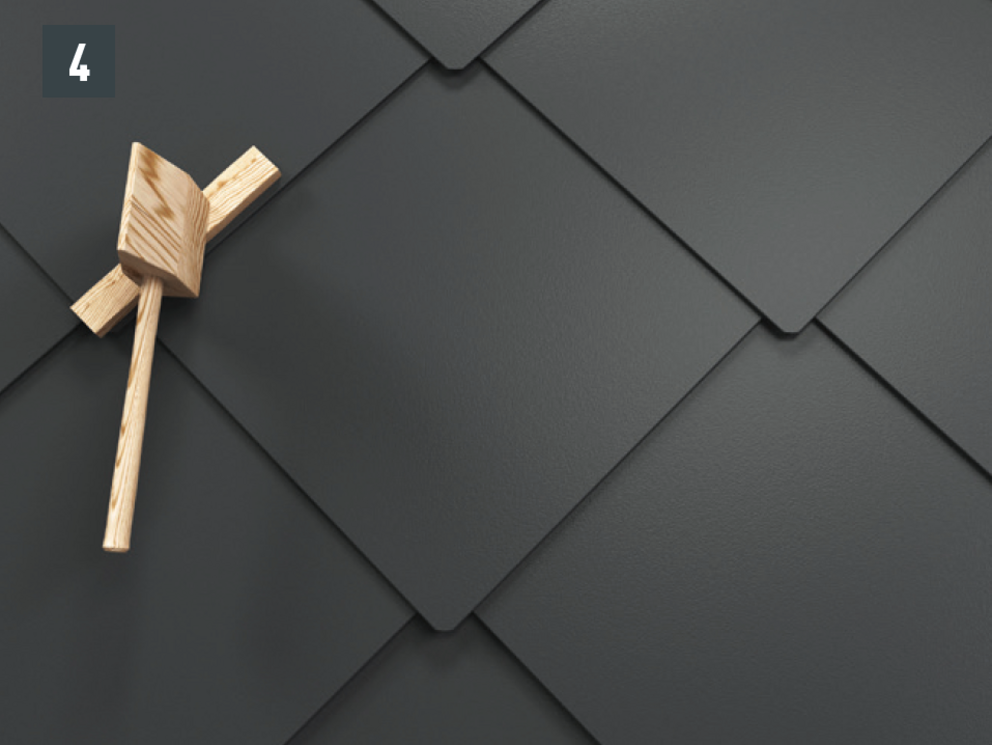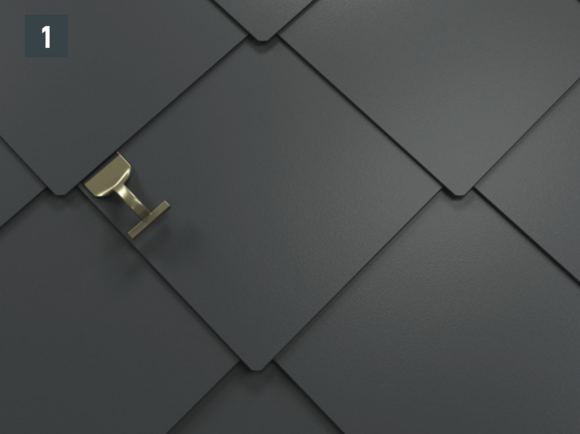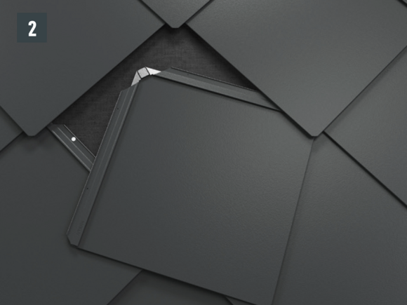 • Ouvrez légèrement l’agrafe d’accroche du nouveau losange de toiture 44 × 44, poussez-le vers le haut et fixez-le (Fig. 3).