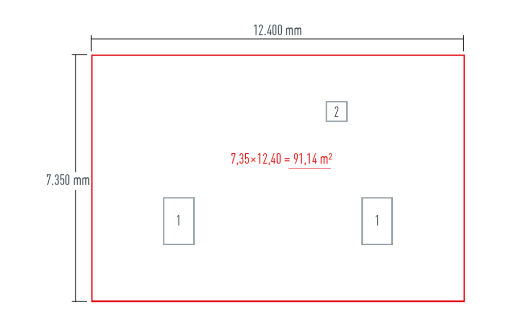 18,228 m² / 0,294 m² = 62 pcs. |