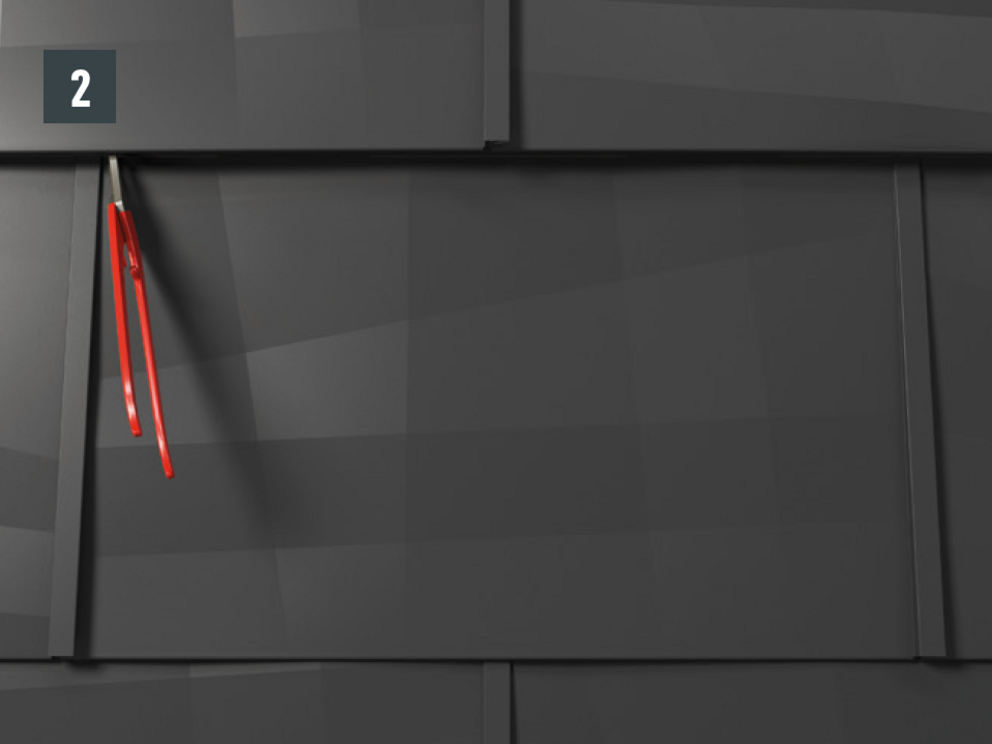 • Retirez la fixation et entaillez la patte brevetée supérieure (Fig. 2). Ensuite, retirez le panneau de toiture FX.12 en le tirant vers le bas.