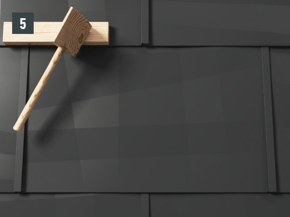 • Insérez et fixez le nouveau panneau de toiture FX.12. Repliez l’agrafe du panneau de toiture FX.12 supérieur vers le bas avec un angle d’environ 90° (Fig. 4).