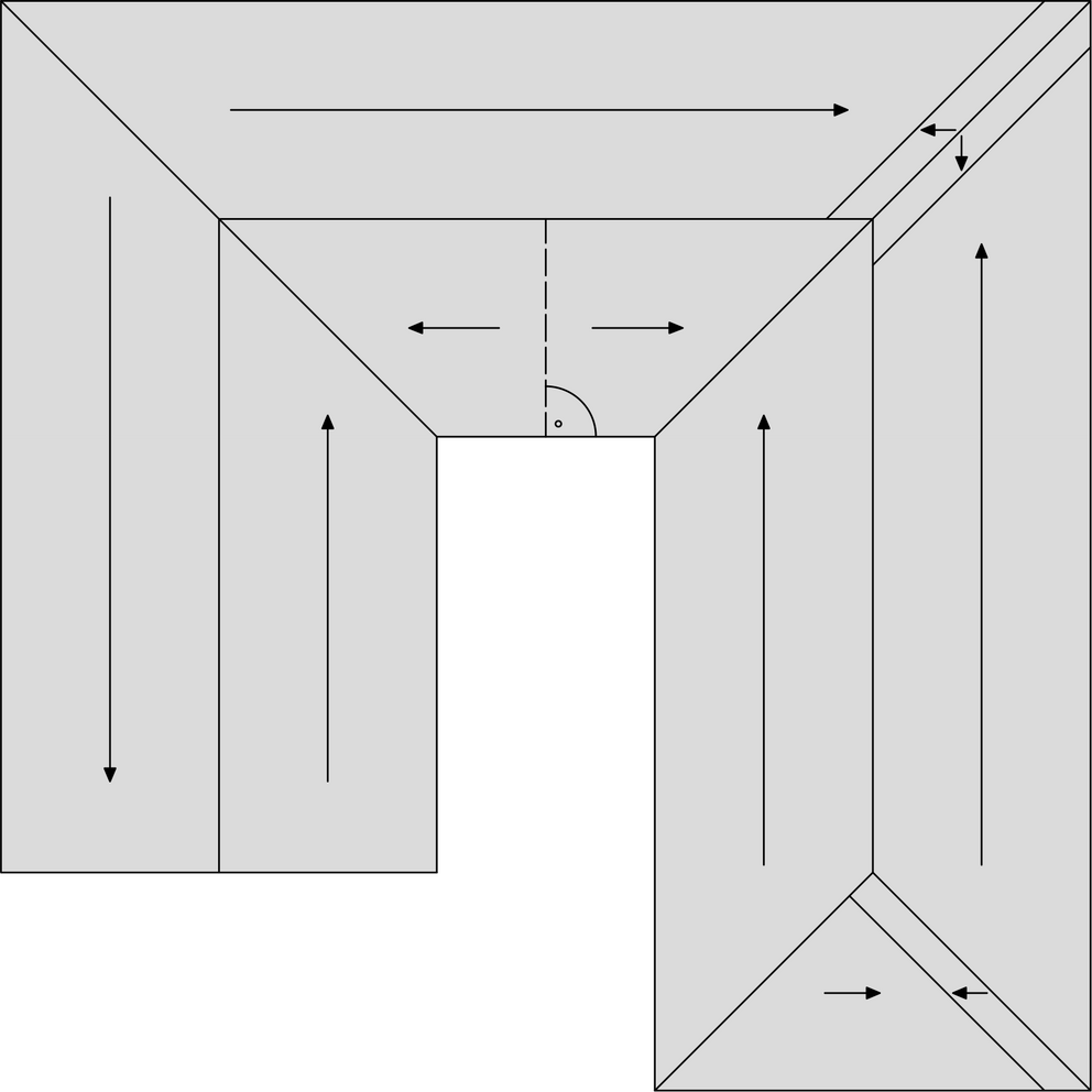 Au niveau de l’arêtier et de la noue, le sens de couverture est impératif, compte tenu du recouvrement nécessaire.