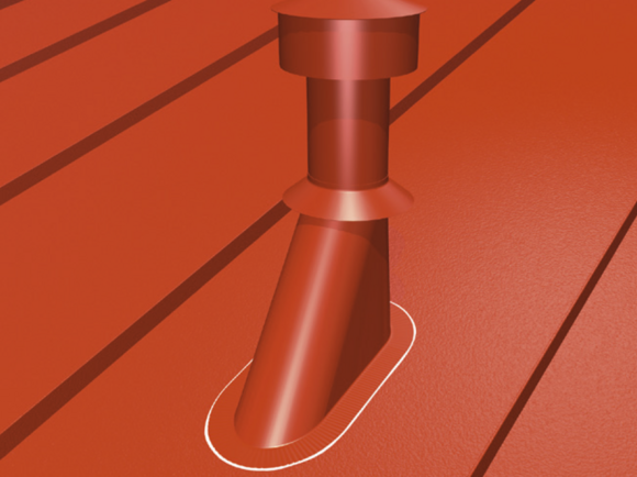 Celle-ci doit être recourbée sur le bord supérieur du raccordement de ventilation à coller et fixée sur le voligeage (fig. 4).