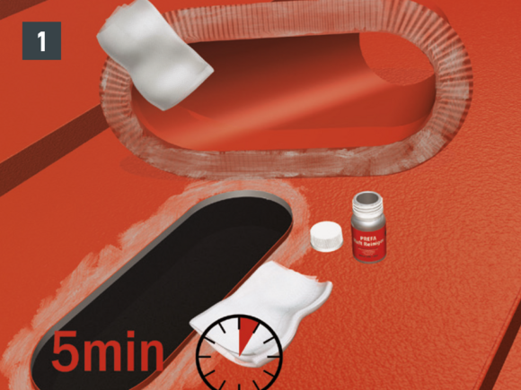 Appliquer la colle spéciale au centre et de manière uniforme sur la bride.