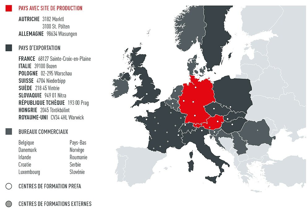 Malgré sa présence internationale, PREFA est restée jusqu’à aujourd’hui une entreprise traditionnelle autrichienne. La proximité avec les clients, des services complets et un réseau qualifié d’artisans constituent le cœur de l’entreprise. Depuis 1981, PREFA fait partie du groupe d’entreprises de l’industriel Dr Cornelius Grupp, qui compte plus de 9 000 collaborateurs dans le monde, répartis sur plus de 40 sites de production.