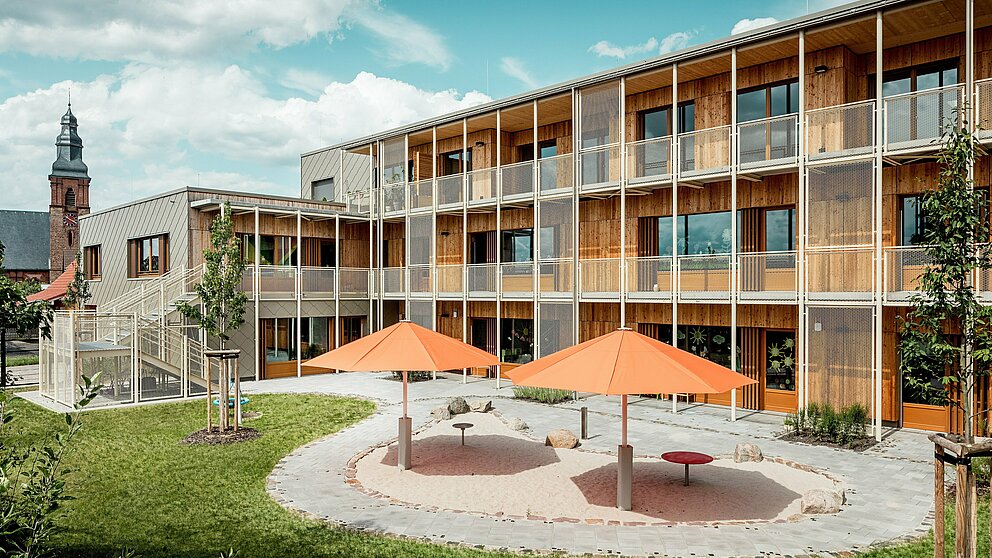 Cette nouvelle crèche devait offrir aux tout-petits un lieu d’accueil répondant à leurs besoins, tout en proposant des logements de qualité au personnel de l’hôpital voisin. « Nous apprécions la combinaison de plusieurs usages au sein d’un même bâtiment, mais les mécanismes de financement, les procédures d’attribution et les attentes des décideurs municipaux constituent souvent des défis persistants », expliquent Theo et Claudia Härtner. Un défi taillé sur mesure pour ce couple d’architectes, qui ne se limite pas à la construction de crèches, écoles primaires et autres établissements éducatifs, mais excelle également dans le dialogue constructif avec l’ensemble des parties prenantes.