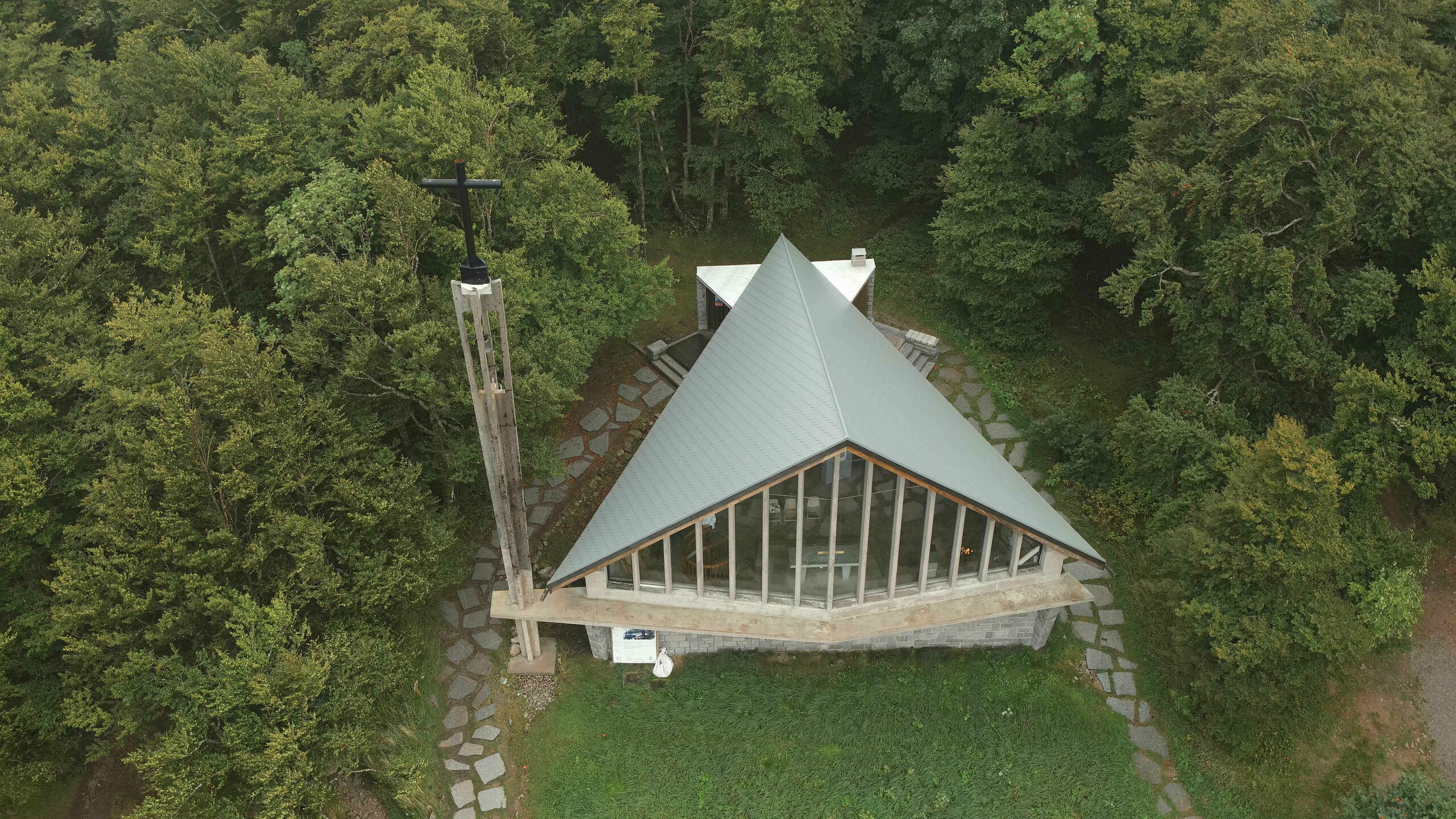 Découvrez ici notre bibliothèque d'images de la chapelle Notre-Dame des Chaumes -Col de la Schlucht - réalisée en bardeaux de toiture dans la teinte P.10 gris souris :